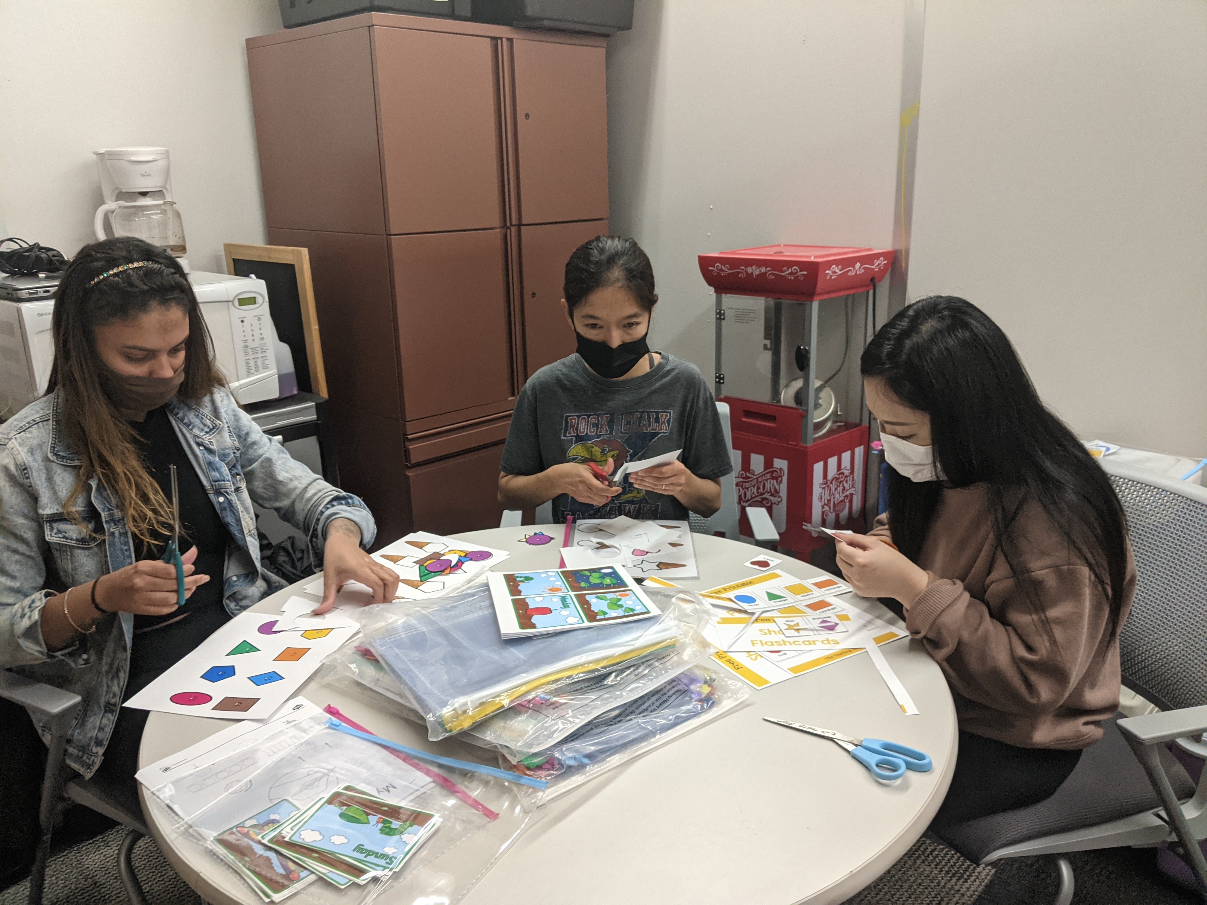 The third group cut out materials for tutoring sessions with the pre-K students as part of the Kindergarten readiness program.