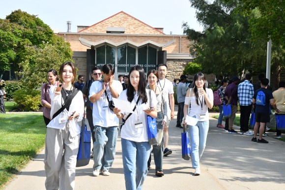 During tours, students connected with one another and inquired about things to do around Kansas City. The grad students informed them of districts like Westport, 39th Street, and the River Market where locals can purchase fresh produce, herbs, artwork, floral bouquets, and other exciting finds. There was also talk of the Nelson-Atkins Museum of Art, popular shopping centers such as The Plaza, and the 75-acre Loose Park near campus—the perfect spot to lounge on a blanket under a canopy of trees, walk along various pathways, or even try a hand at Tennis.