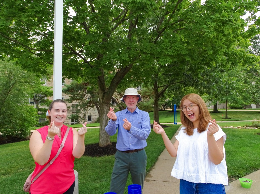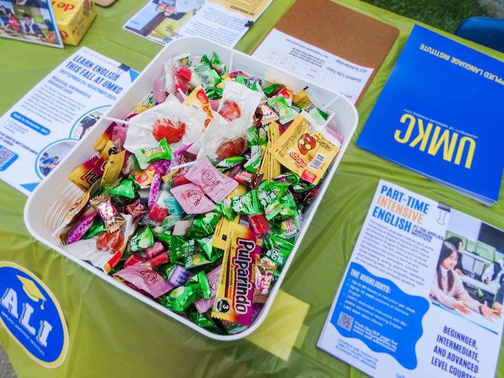 Before classes started on August 19th, the ALI attended the International Student Affairs Office Resource Fair on the University Walkway. We brought candies from around the world (and other goodies) to give out to students who stopped to chat with us at our table.